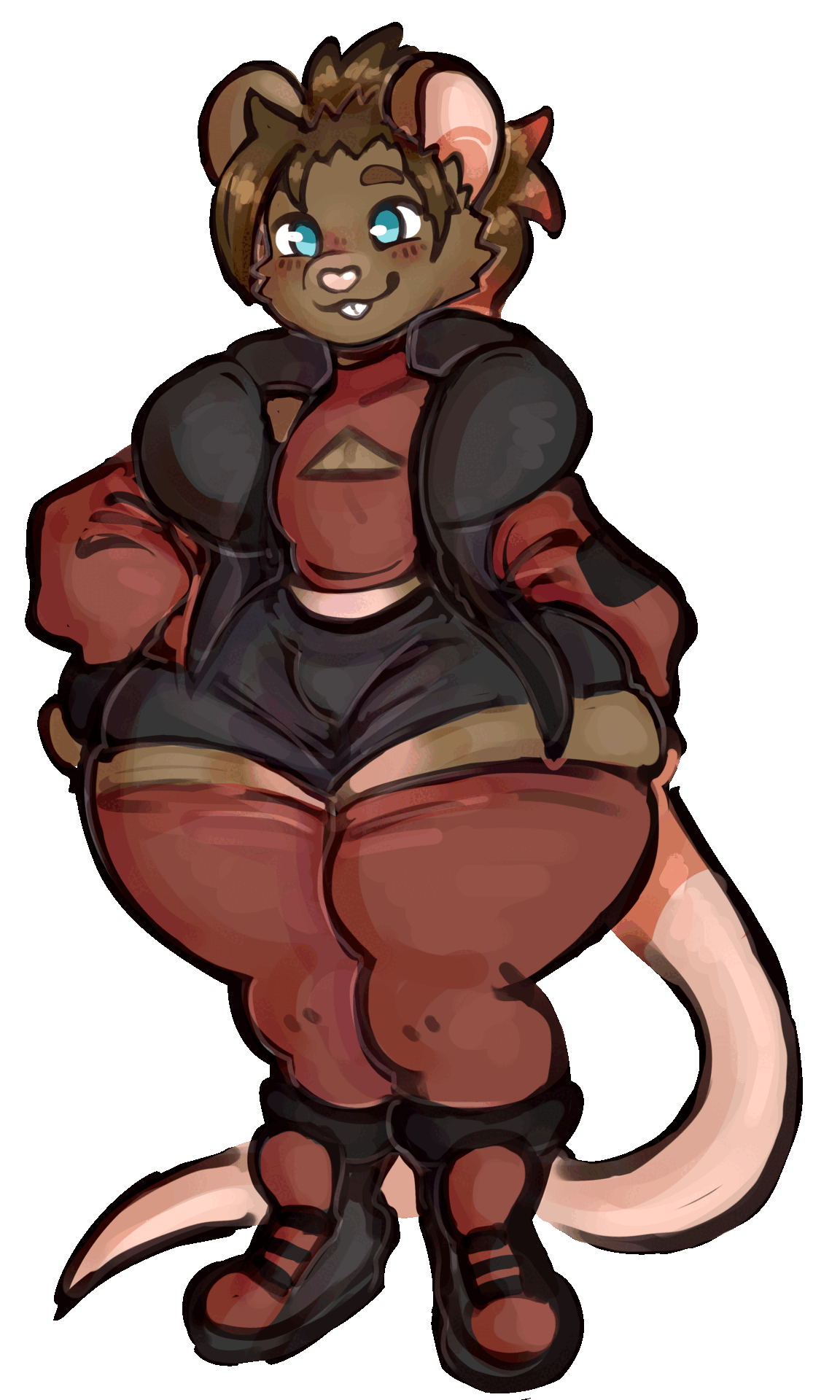 This rat is my fursona, my vtuber identity and also the central hub for all of my original characters. They live in Neo Berloit where almost all of my Ocs live. They are the character I feel the closest to and see my self in even if they are not a 1/1 version of me as before. I hope you like them, and enjoy whatever content I put out, from tiktok, bluesky, twitch, and more!